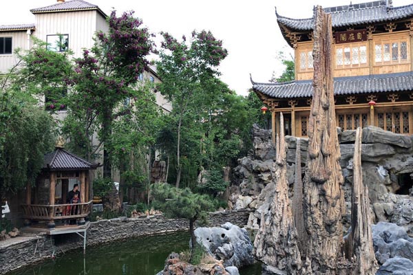 景区鉴仿园林式风格,结缘于石、以石寓乐。它依山傍水而建。亭台楼阁、错落其间;奇石峭岩,相映成趣;草木花藤、争奇斗艳;飞瀑清潭、水声叮咚。13000余平方的精巧建筑,内置精彩纷呈之各色馆阁,取中西风格之要,蕴园林经典之义,有老北京式的四合院——拙院、福院;有古朴、庄重的中式别墅——融院、璞院;还有现代十足、洋气尽现的西式别墅——欧源。