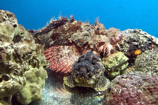 石头鱼躲在海底或岩礁下,将自己伪装成一块不起眼的石头,即使人站在它的身旁,它也一动不动,让人发现不了。