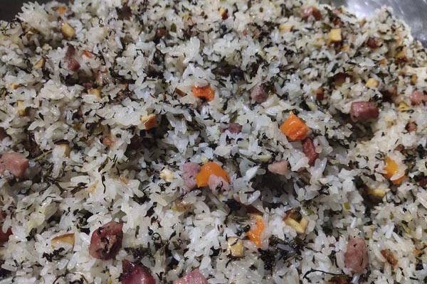 社饭的制作方法是:将田园、溪边、山坡上的鲜嫩社蒿(香蒿、青蒿)采撷回家,洗净剁碎,揉尽苦水,焙干,与野蒜(胡葱)、地米菜、腊豆干、腊肉干等辅料掺合糯米(可掺部分粘米,但需先将粘米煮成半熟后掺入糯米)蒸或焖制而成。其味鲜美,芳香扑鼻,松软可口,老少皆宜;土家人做社饭不光是自家人吃,还把它作为馈赠亲友的佳品,故有民谚说:“送完了自家的, 吃不完别家的。”充分显示出土家人淳朴、亲和的民风。由于社蒿(香蒿)具有很好的药理作用,其性苦寒,能治疗和预防伤、肿痛、痨、疟、痢、痔等多种疾病,所以社饭是土家人传统药膳中的一个常用品种。