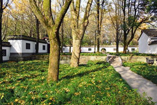 东侧为"松筠别墅",系当地著名爱国之士郁华(曼陀)为供老母安度晚年所营建,当落成之际,黎元洪题赠"节比松筠"额,因而为名。