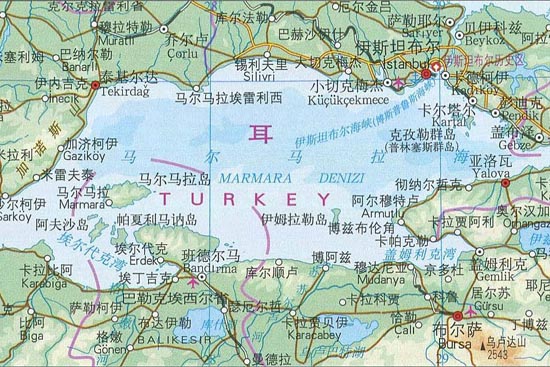 因蒸发大于降水,海水盐度较高,为36~39‰,高于马尔马拉海和黑海,因而引起黑海中较淡的海水从表层通过海峡流入爱琴海,而爱琴海中盐度较大海水通过海峡下层流向黑海的海水交换形式。